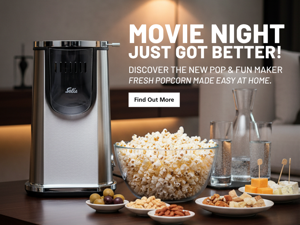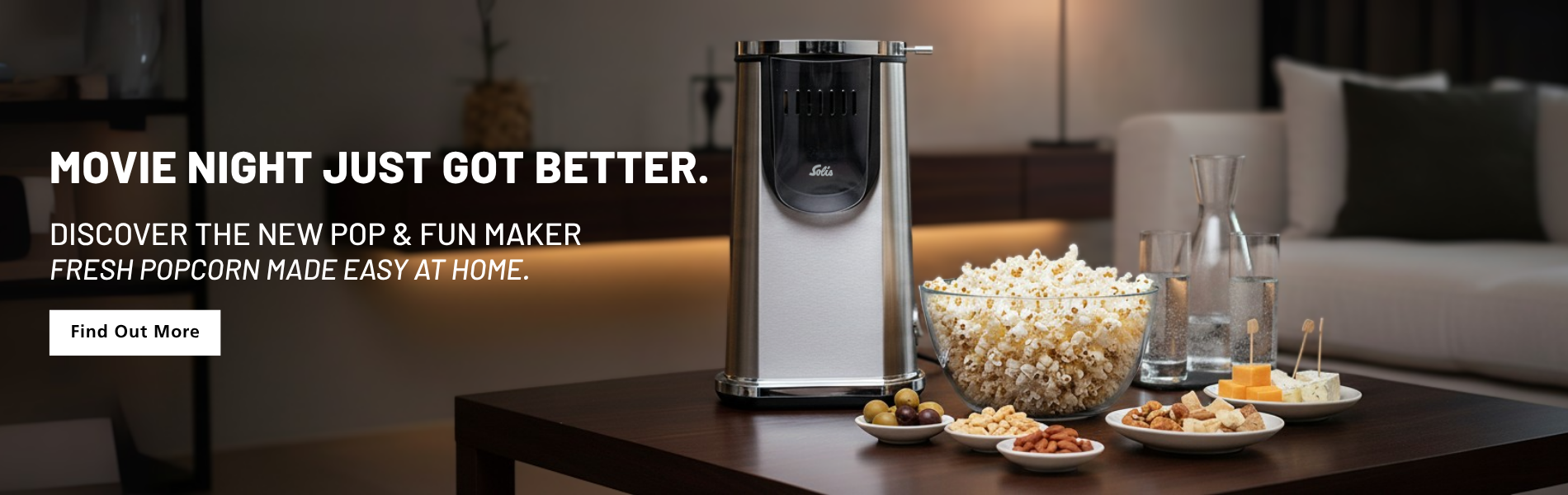 Our sleek stainless steel popcorn maker makes every movie night better. Add your favorite flavors—salty, sweet, or buttery—and snack your way to happiness.
